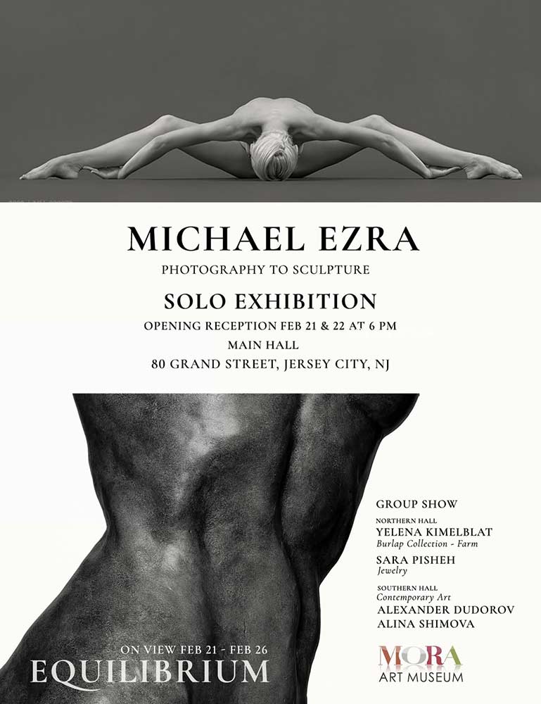 From February 21 through February 26, 2026, MORA Art Museum presented Equilibrium at 80 Grand Street in Jersey City. The multi-part exhibition brought together photography, sculpture, jewelry, and contemporary painting, combining Michael Ezra’s solo presentation with a group show featuring Yelena Kimelblat, Sara Pisheh, Alexander Dudorov, and Alina Shimova.