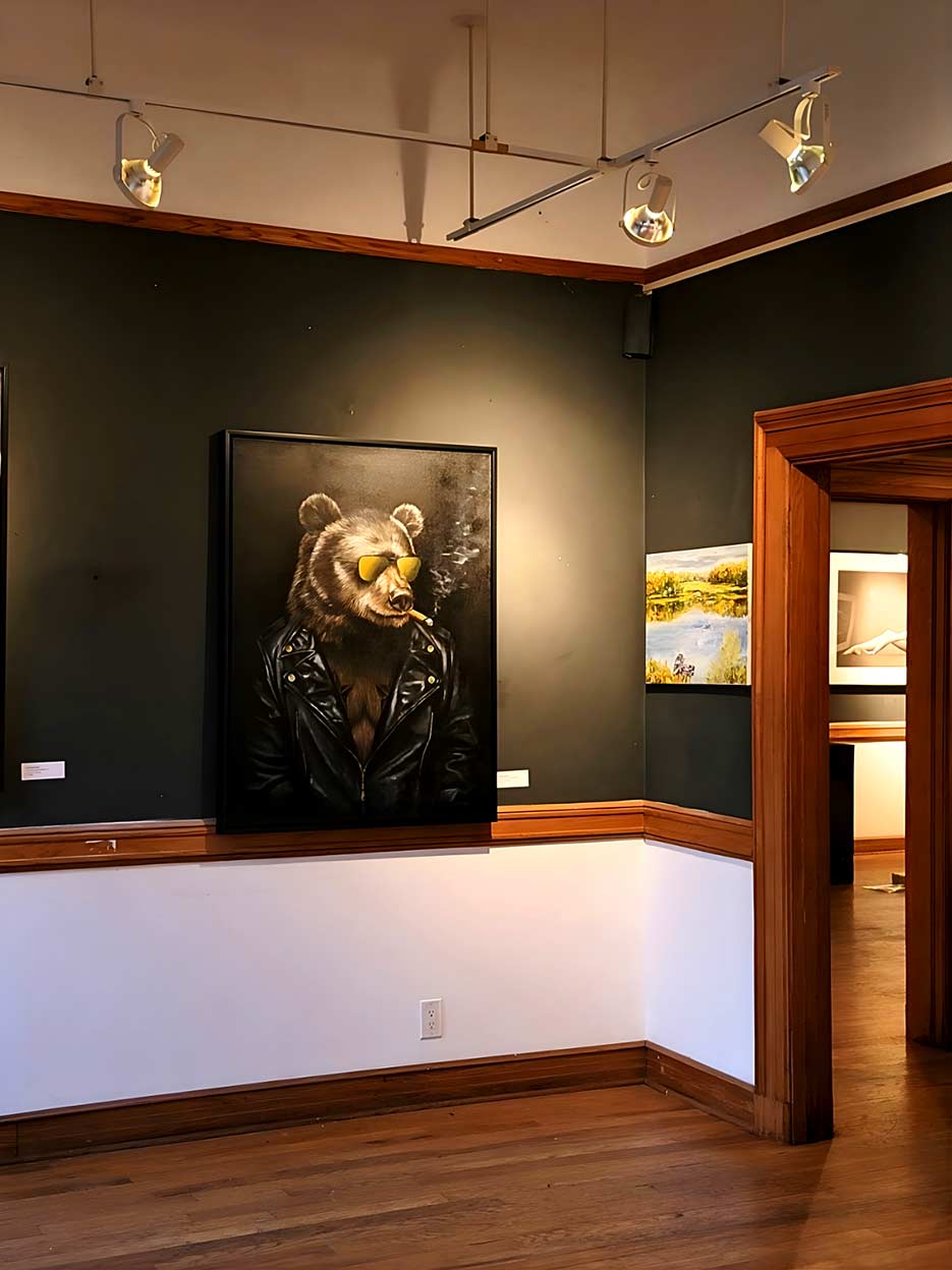 Alina Shimova, a Miami-based contemporary figurative painter, presented works from her New Totems series, a body of work that marked a notable shift in her practice toward a darker, more resolved symbolic language. Her paintings combine classical training, spiritual reference, and anthropomorphic imagery, often using animals and sacred figures as reflections of contemporary identity.