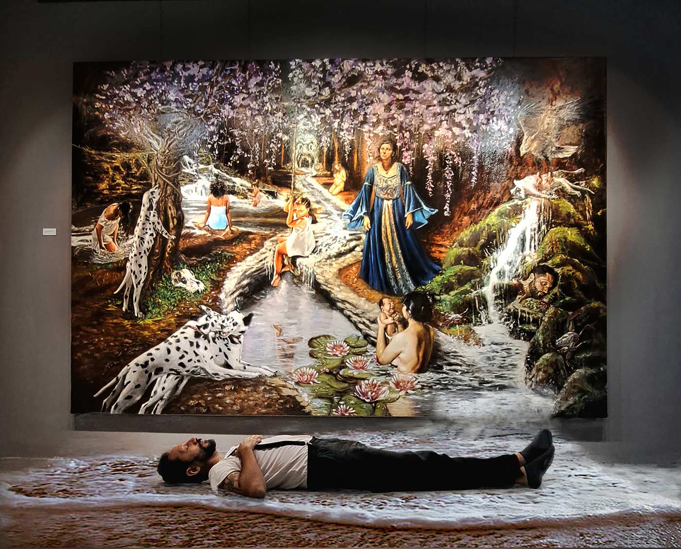 Balsamo’s current series immerses itself in the rich tapestry of symbolism found in both the human figure and the natural landscape, reimagining these elements within tranquil yet frequently psychologically layered environments. Drawing from the atmospheric tension present in the works of masters like Balthus and Antonio Mancini, as well as contemporary painters adept at dancing along the fine line between realism and the surreal, he expertly weaves visual narratives that elude simple interpretation.
